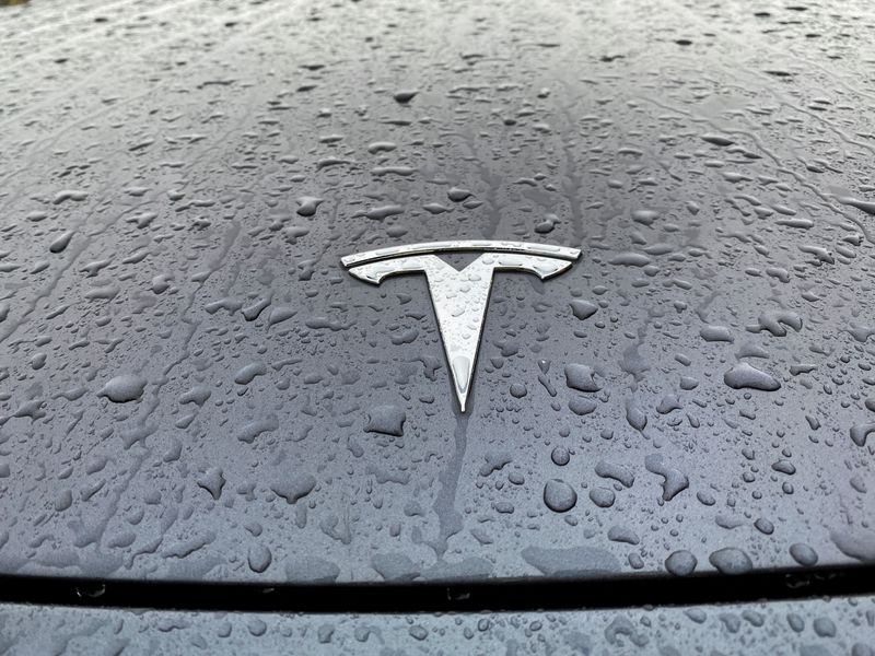 © Reuters. FILE PHOTO: A view shows the Tesla logo on the hood of a car in Oslo, Norway November 10, 2022. REUTERS/Victoria Klesty/File Photo